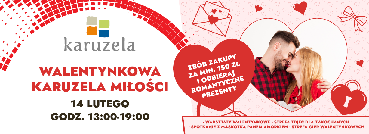 Już 14 lutego obchodzimy święto wszystkich zakochanych. Z tej okazji zapraszamy do wspólnego świętowania Walentynek z Karuzelą.